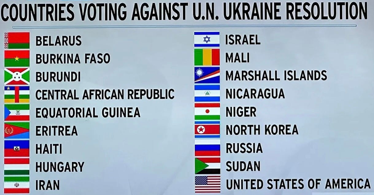 Speaking of international allies and strange bedfellows, let's take a moment to appreciate this stunning roster of nations voting against a UN Ukraine resolution. When your voting bloc includes luminaries like North Korea, Belarus, and Russia itself, you might want to reconsider your foreign policy positions. Or at minimum, the company you keep.